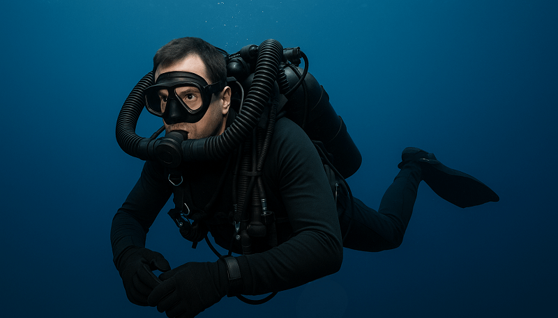 Дайвинг с ребризером — это погружение с использованием специального аппарата, который рециркулирует выдыхаемый воздух. Вместо того чтобы выбрасывать отработанную смесь, устройство очищает её от углекислого газа и добавляет кислород. Это позволяет дольше оставаться под водой и реже делать декомпрессионные остановки.