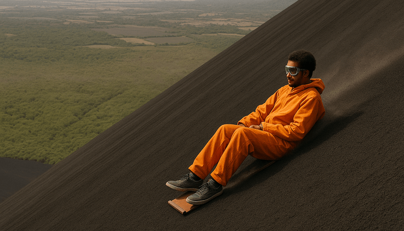 В Никарагуа особенно популярны ночные шоу, где экстремалы на досках спускаются по склонам активного вулкана Серро-Негро на скорости до 95 км/ч. Люди надевают защитные костюмы, маски и берут специальные доски, чтобы скользить по чёрному пеплу.